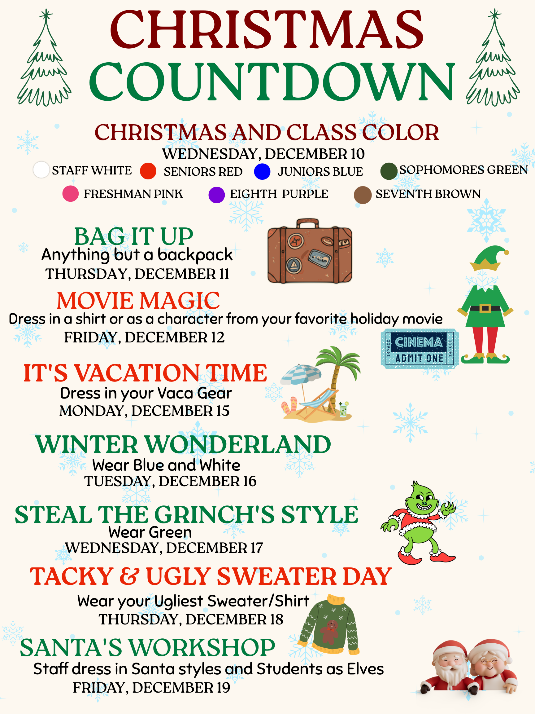 Dec. 10-19 - Christmas Countdown Dress-Up Days Christmas Dress Up Days