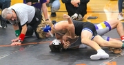 Blaine Anson (138), in his first match of the day, fell to Henry Holtmeier from Tri-County. In his next match, Anson wrestled hard for three minutes before getting pinned by Micah Fong from Lincoln Christian.